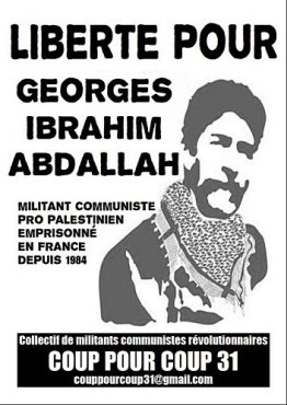 Georges Ibrahim Abdallah est un militant communiste arabe pro-palestinien incarcéré en France depuis 1984 pour des actions de résistance anti-sionistes revendiquées par les Fractions armées révolutionnaires libanaises (FARL). Georges Ibrahim est libérable depuis 1999, mais l’Etat français utilise tous les prétextes pour le maintenir en détention (loi sur la rétention de sûreté, procès pour refus de prélèvement ADN, il passe en procès le 1er décembre à Tarbes).