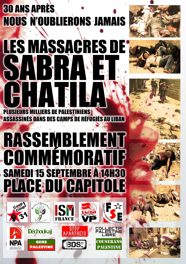 30 ans après, il est de notre responsabilité de commémorer ce massacre pour que jamais il ne soit oublié, de rappeler le sort des réfugiés palestiniens, leur droit inaliénable à l’autodétermination et au retour sur leur terre.