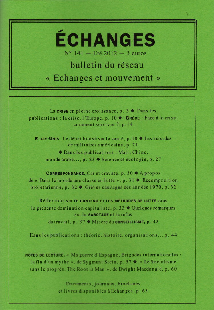 Lu dans « Echanges » N°141 – Eté 2012 (extraits)